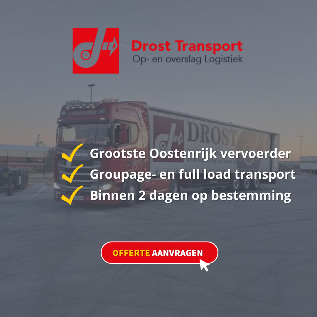 Of het nu gaat om een palletplaats, een partij groupage of volle vracht. Wij lossen het voor u op! Wanneer u kleinere distributie zendingen naar Oostenrijk of vanuit Oostenrijk te versturen heeft hanteren wij een standaard doorlooptijd van 48 tot 72 uur. Indien u wenst dat uw goederen sneller aangeleverd worden in overleg. Voor transport Oostenrijk biedt Drost Transport de allerbeste service tegen de juiste marktconforme tarieven. Neem contact met ons op voor een offerte of vul het formulier in.